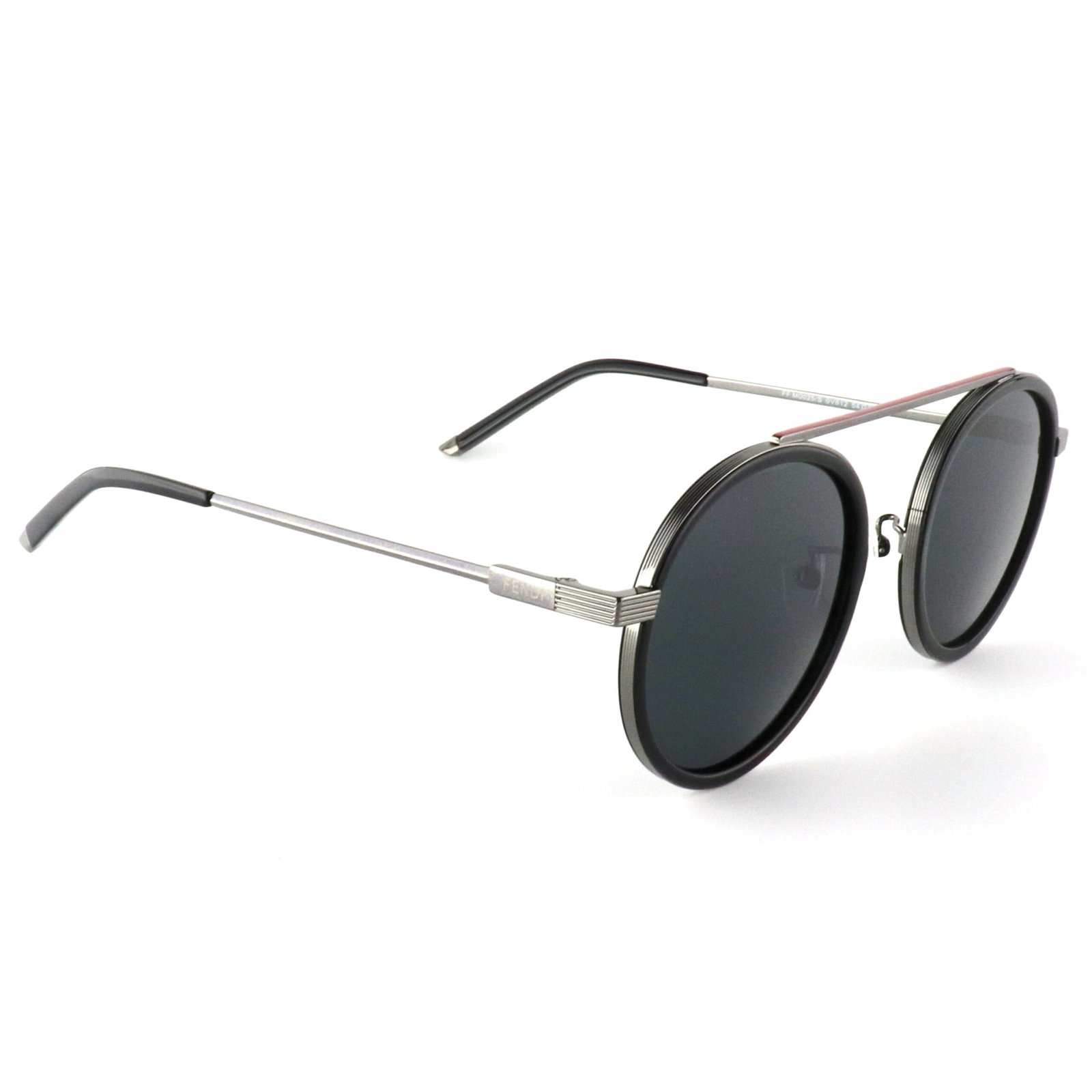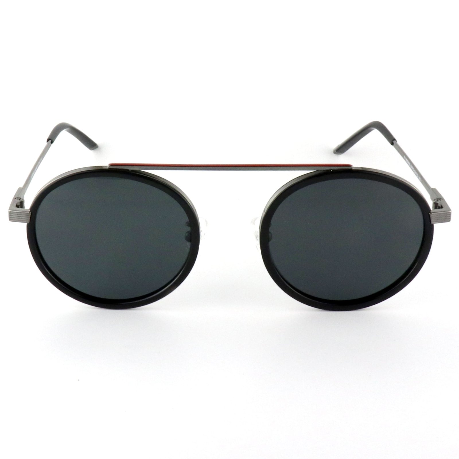 tamanho lentes-ponte: 54-22 comprimento da haste: 145 tipo de material da armação: metal cor da armação: prata/preto cor das lentes: cinza